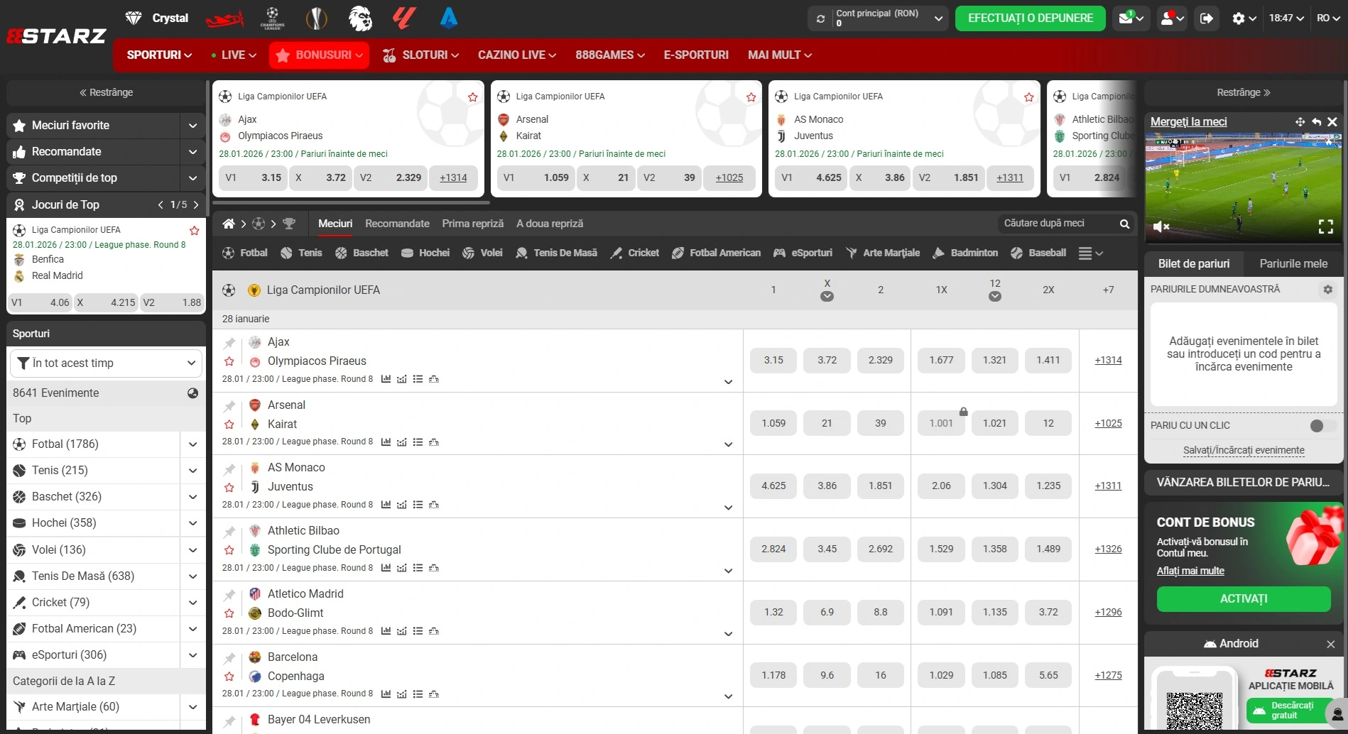 Depinde ce cauți. Dacă vrei multe jocuri, bonusuri mari și posibilitatea să depui cu cripto, 888starz e o variantă solidă pentru românii care vor să joace pe bani reali. Au peste 4000 de sloturi, Aviator și alte crash games, plus pariuri sportive dacă te plictisești de cazino. Programul VIP cu cashback e un plus dacă joci regulat.